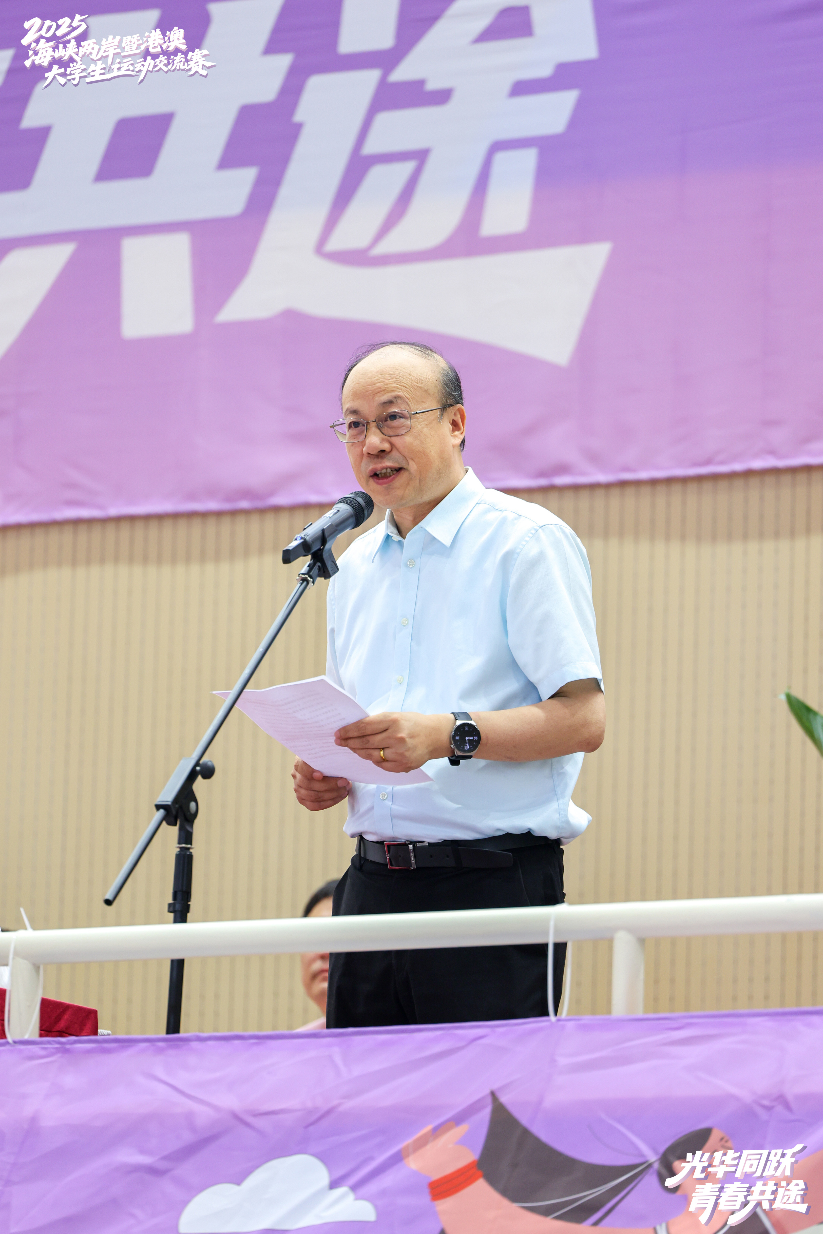 作为东道主,上海建桥学院副校长赵雷洪对远道而来的运动员们送上祝福。他表示,学校高度重视本届赛事的组织工作,将全力打造高水平交流平台,推动两岸及港澳大学生之间的深入互动。他寄语青年学子以赛会友、增进理解、凝聚共识、携手同行。