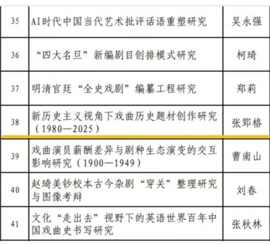 近日,2025年国家社科基金艺术学年度项目公示名单正式发布,新闻传播学院张郢格老师申报项目《新历史主义视角下戏剧历史题材创作研究(1980-2025)》,成功获批一般项目,这是我校在科研领域的又一重要突破,也充分展现了新闻传播学院在相关学科领域的学术潜力。