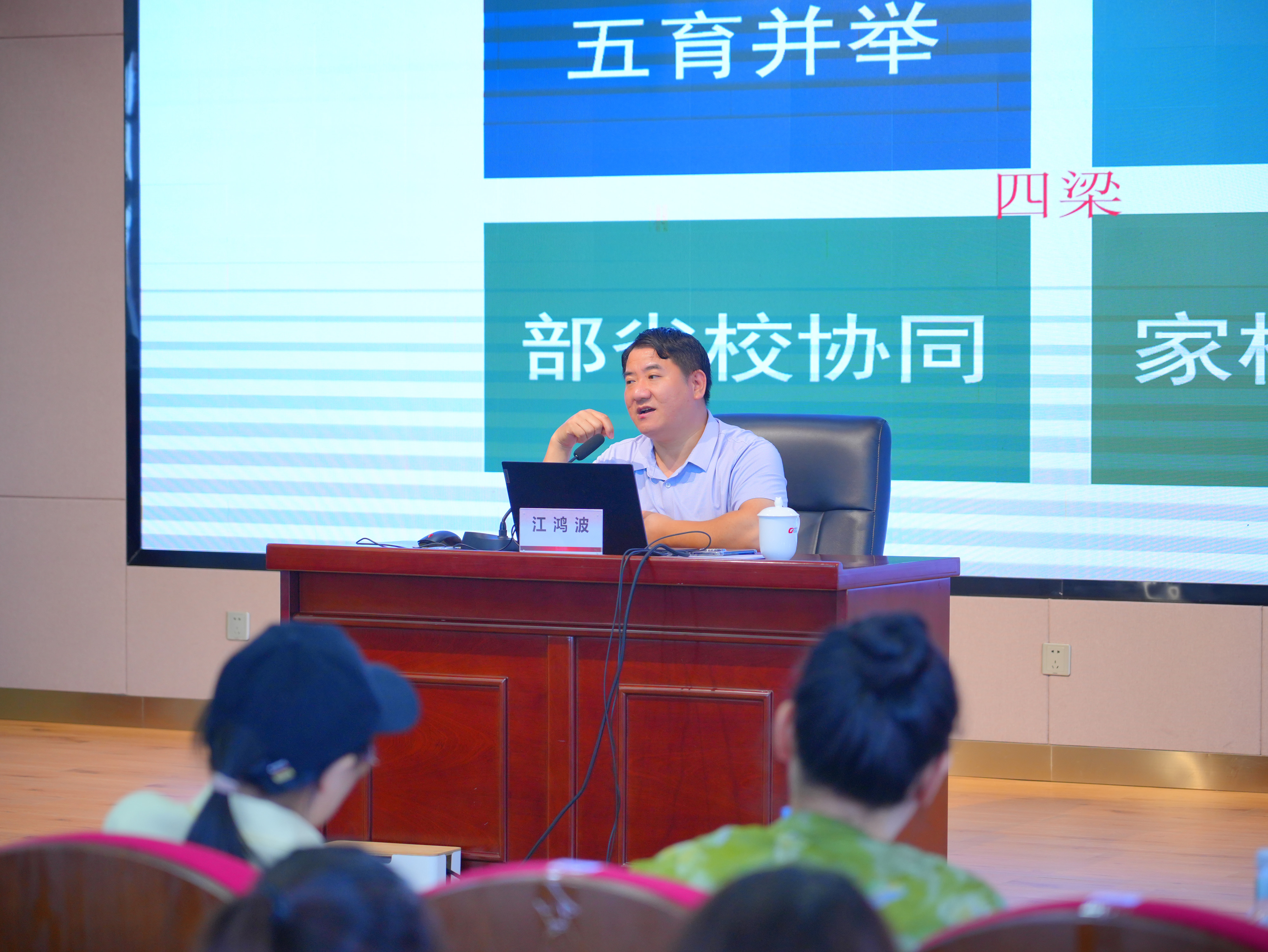 上海市民办教育综合党委副书记、办公室主任江鸿波以《实施新时代立德树人工程,培育堪当大任的时代新人》为题作报告,他从历史的高度,讲解了高等教育的使命与任务,分析了民办高校面临的挑战,剖析了如何落实立德树人的根本任务。