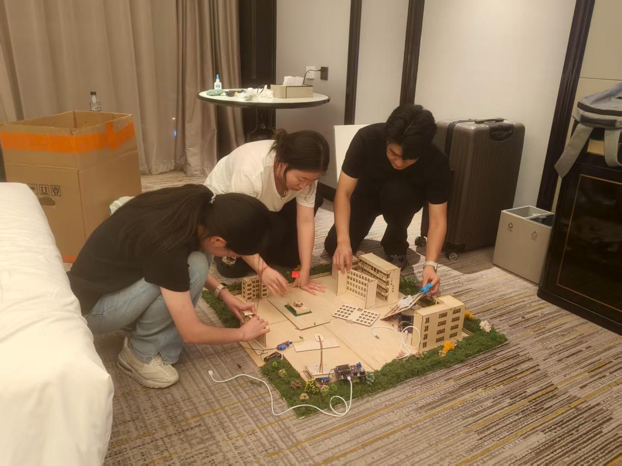 他们至自三月份起便开始了紧张的备赛工作。他们面对了诸多挑战,包括低年级课程负担重、专业知识尚在积累阶段以及时间紧迫、任务繁重等问题。在作品准备的初期阶段,开发板和华为云的连接一直存在问题,远程命令的下发存在明显的延迟,尽管尝试了多种调试方法,问题依旧未能解决。在焦虑不安之际,老师建议寻求官方技术支持。在专属工程师的远程协助下,问题被诊断为数据解析错误,并在修正后系统得以稳定运行。