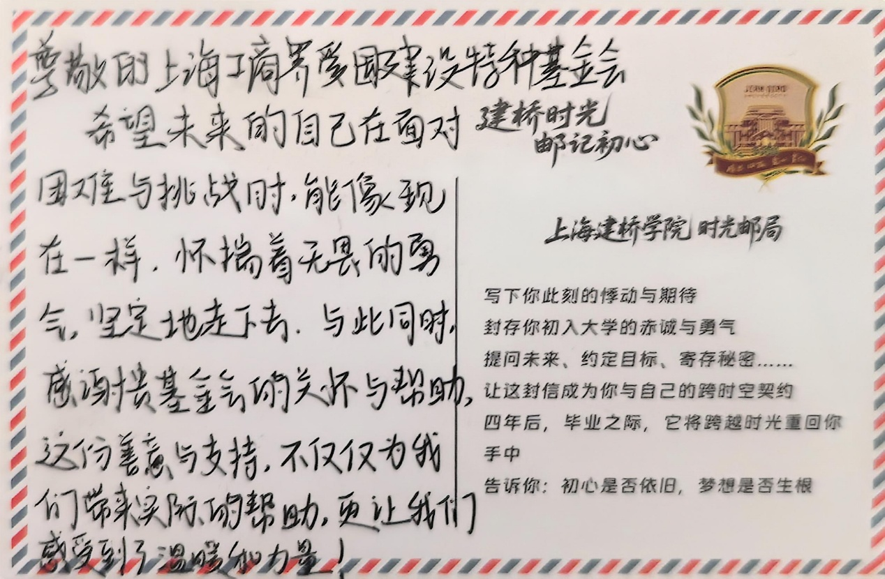 爱不止步,温暖延续。据悉,上海建桥学院与爱建特种基金会将继续深化合作,共同书写更多“助学筑梦”的温暖故事,为教育强国建设注入源源不断的善意与力量。