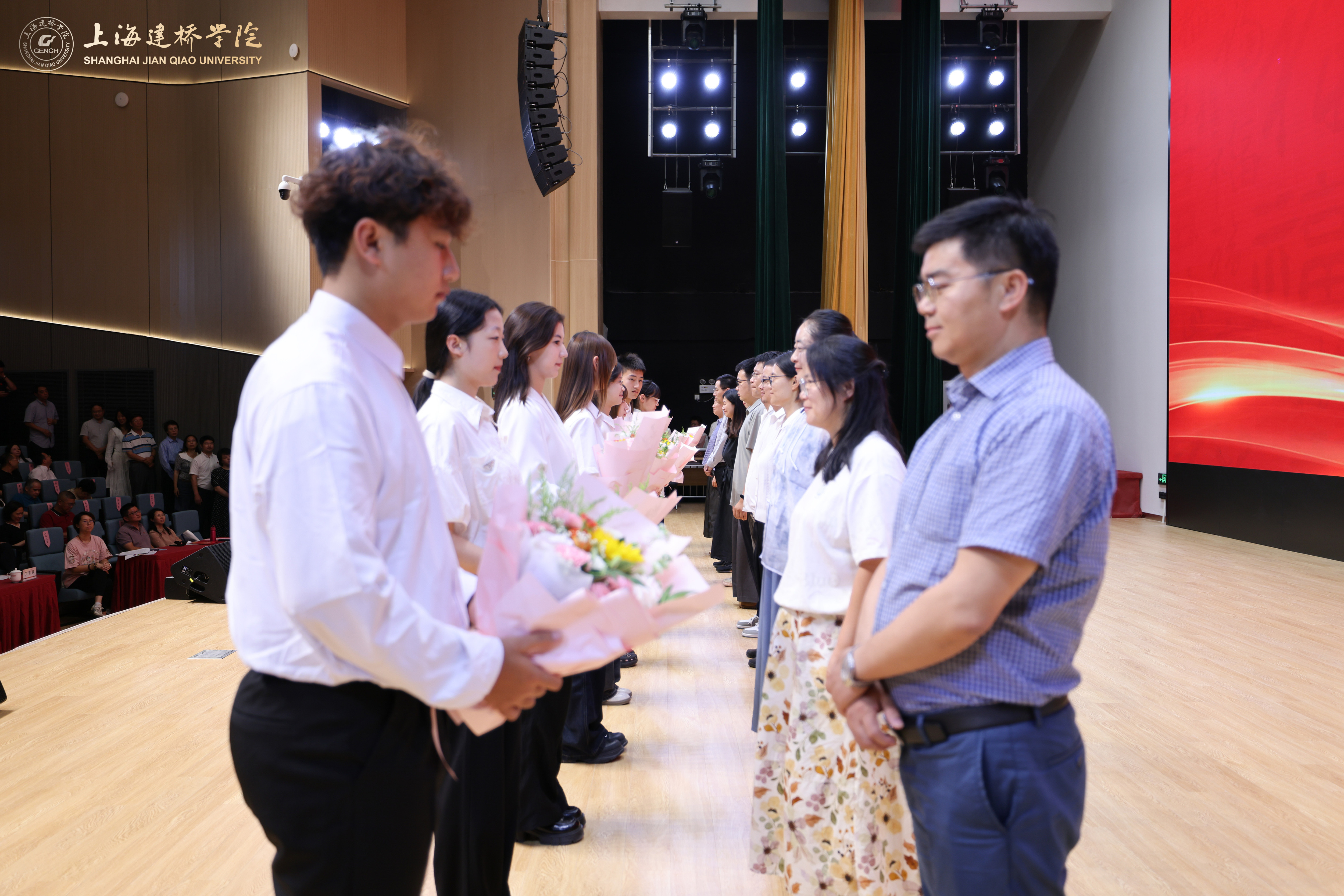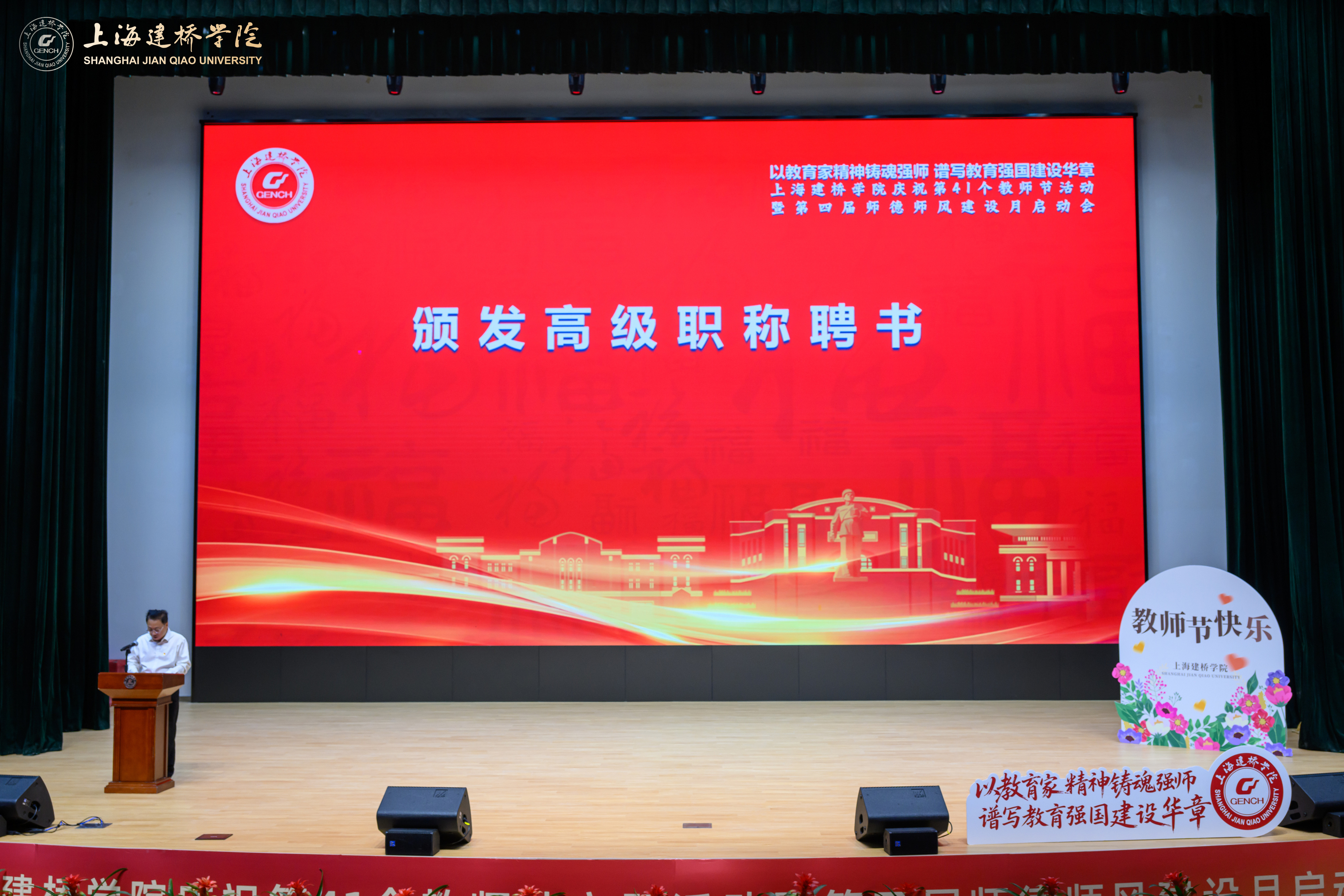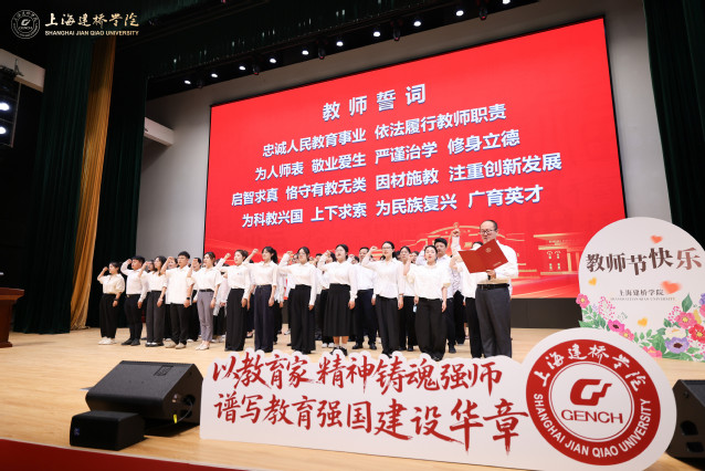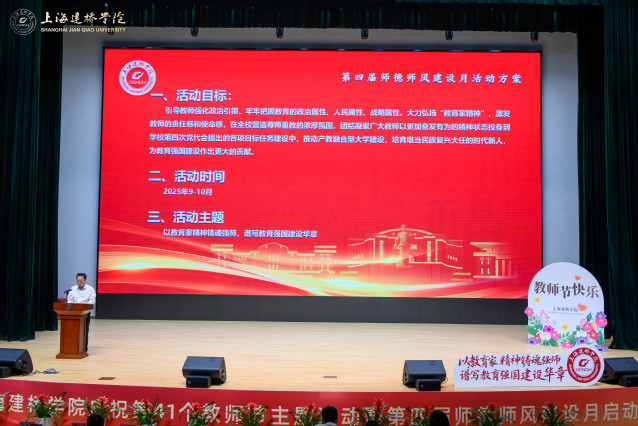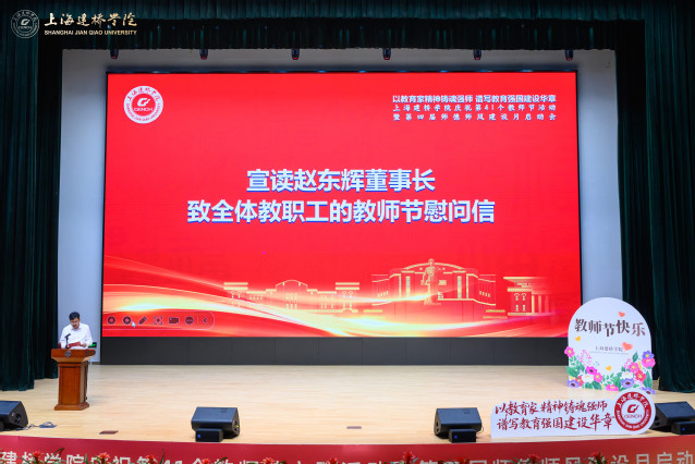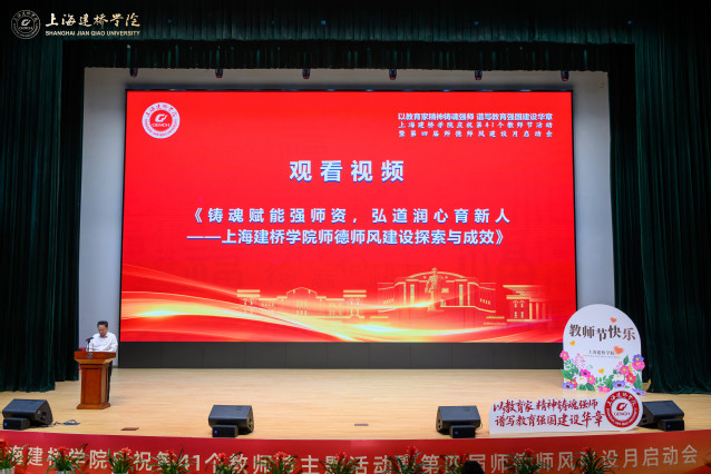 9月11日下午,上海建桥学院大礼堂内洋溢着节日的喜悦,创校校长黄清云教授、校长朱瑞庭、校党委书记杨伟人等全体校领导与教职工代表欢聚一堂,以“以教育家精神铸魂强师、谱写教育强国建设华章”为主题,举行庆祝第41个教师节主题活动暨第四届师德师风建设月启动会。校党委书记杨伟人主持庆祝大会。