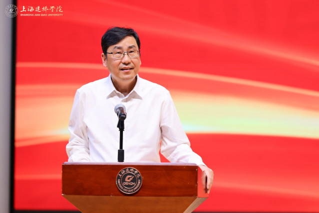 杨伟人书记首先代表学校党委向辛勤耕耘在教育教学一线的全体教职员工致以节日问候与崇高敬意。他表示,今年是《教育强国建设规划纲要(2024 - 2035 年)》落地实施的开局之年。习近平总书记在今年教师节给全国特岗教师代表回信中强调,教育大计,教师为本,教师要坚守教育初心,不断提高教书育人本领,努力培养出更多德智体美劳全面发展的社会主义建设者和接班人。他希望广大教师深入学习贯彻习近平总书记重要讲话精神,按照上海市教育大会部署,争做新时代教育家精神的践行者,争做学生为学为事为人的“大先生”,共同为培养担当民族复兴大任的时代新人,为推动学校高质量发展作出新的更大贡献。