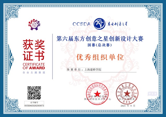 近日,第六届东方创意之星设计大赛评审结果揭晓,艺术设计学院师生表现卓越,共摘得国家级金奖2项、银奖1项、铜奖1项,以及省级金奖2项、银奖3项、铜奖13项,展现出强劲的专业实力与创新水平。张慧慧与刘冰两位教师分获省级及国家级“优秀指导教师奖”,上海建桥学院荣获“优秀组织单位奖”。
