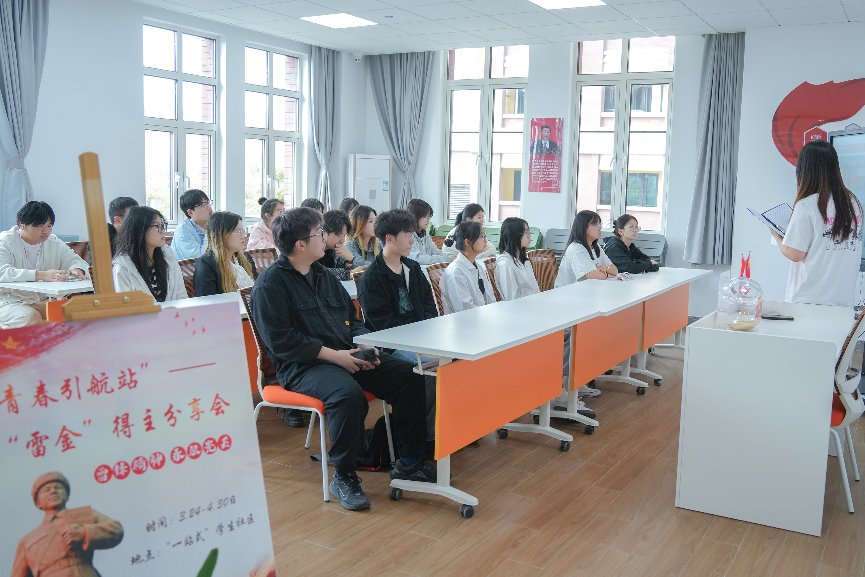 学校始终坚持以学生为中心,充分发挥学生的主体性,在学生社区建立“社区党支部-党员工作站-党员工作组”三级联动机制,打造学生社区网格化学生自治体系。2100余名学生党员、入党积极分子主动在社区亮身份,积极投入社区治理建设,带领身边同学积极践行雷锋精神,学生党员主动参与社区治理的覆盖率达100%。学校坚持“五育并举”,在“一站式”学生社区建设过程中将文化建设与学生的专业学习、成长需求相结合,持续打造“社区学堂”“红色读书会”“红色观影”“青春引航站”等社区特色文化品牌,构建全方位、立体化的育人体系,取得了明显的育人实效。