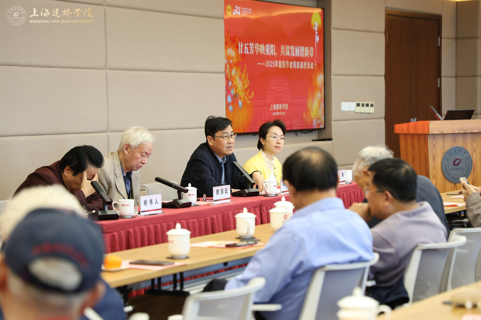秋色斑斓重阳日,桂香迎得故人回。10月29日,正值重阳佳节,又逢建校25周年,上海建桥学院校园内洋溢着温馨与喜悦。由校工会、校退管会组织筹备的2025年重阳节老同志返校活动如期举行,102位退休老领导、老教师重返曾经躬耕之地,追忆奋斗岁月,共话未来发展。校长朱瑞庭、校党委书记杨伟人、创校校长黄清云等校领导出席座谈会。座谈会由副校长、工会主席陈伟主持。
