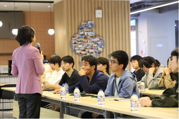 零界魔方项目经理徐昊阳详细介绍了“临港科创城”、“超级个体288”等针对青年创客的扶持政策,为学生打开了在临港就业创业的多元路径。