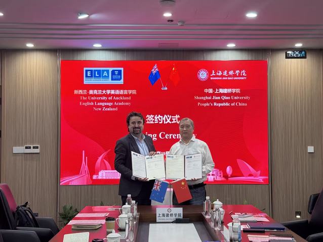 10月31日,上海建桥学院与新西兰奥克兰大学英语语言学院正式签署合作备忘录(MOU),标志着两校在人才培养与学术交流等领域的合作步入新阶段。今年7至8月,建桥学子已顺利完成奥克兰大学为期四周的沉浸式暑期访学,为此次深度合作奠定了坚实基础。