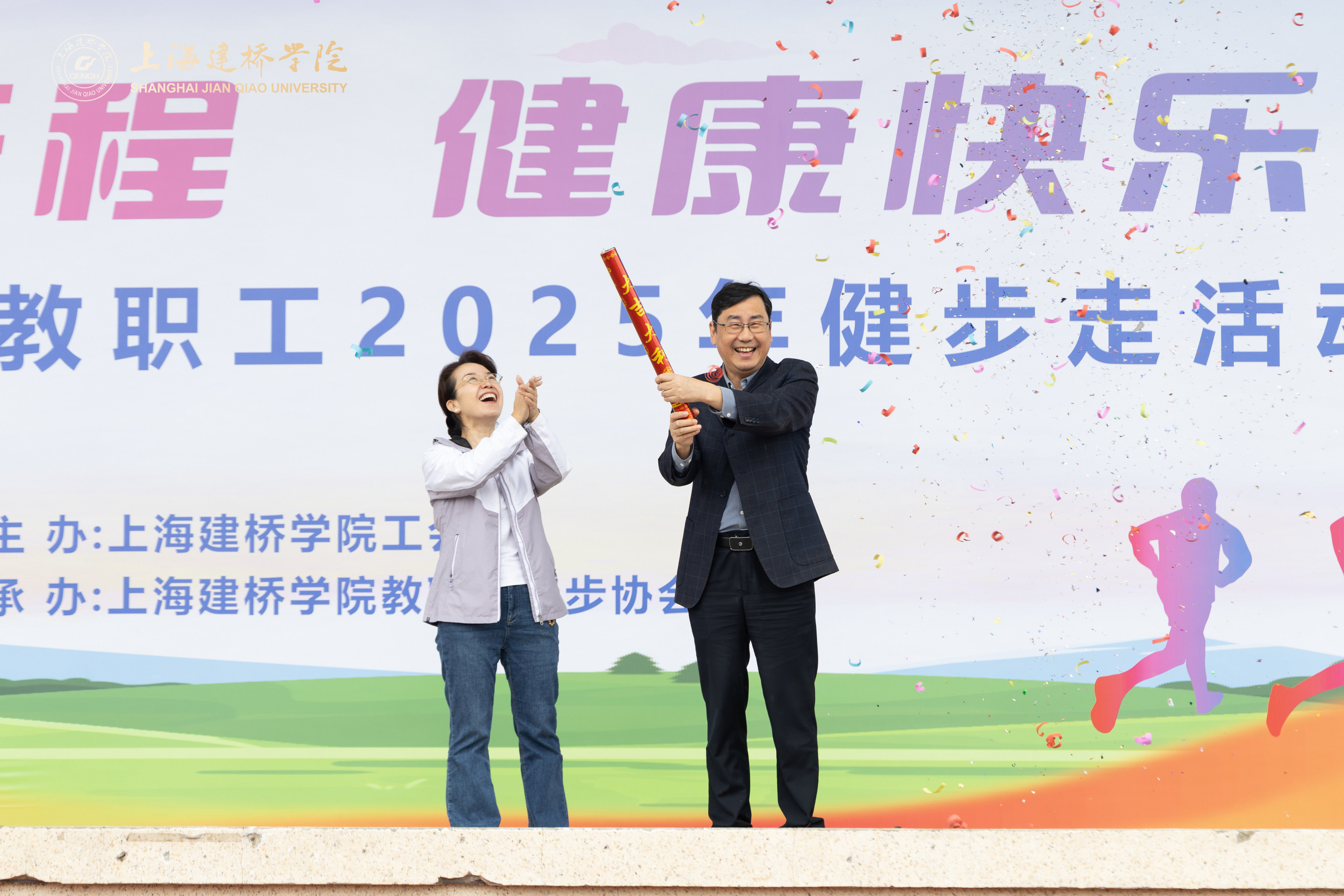 时值立冬,秋意正浓。11月7日下午,在上海建桥学院迎接二十五周年的喜庆氛围中,由校工会主办、教职工徒步协会承办的“奋进新征程 健康快乐行”2025年教职工健步走活动在学校大操场活力开启。全校二百余名教职工精神抖擞,组成15支徒步小队,以铿锵的步伐和昂扬的姿态,共同为建桥的二十五岁生日献上了一份充满活力的贺礼。