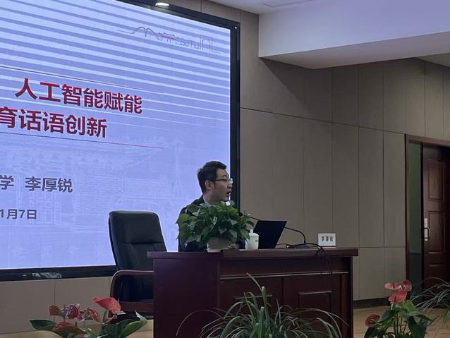 上海交通大学安泰经济与管理学院党委副书记李厚锐教授以《对话“Z世代”:人工智能赋能思想政治教育话语创新》为题作报告。他从数字化时代背景和Z世代行为认知特征出发,深刻剖析了AI技术带来的思政教育话语变革、风险挑战及创新路径,并结合多所高校的实践案例畅想了未来AI赋能思政话语的多元应用场景。