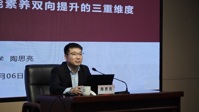 上海中医药大学党委常委、宣传部长陶思亮教授以《基于师生人工智能素养双向提升的三重维度》为题作报告。他详细分析了人工智能素养是未来学生和教师基本素养的原因,重点讲解了师生人工智能素养双向提升的三重维度,提升“AI+”应用过程的教师参与度,提升“AI+”教育教学过程的学生参与度,提升“AI+”生态建设的学校支持度,最后,他回答了学员的提问。