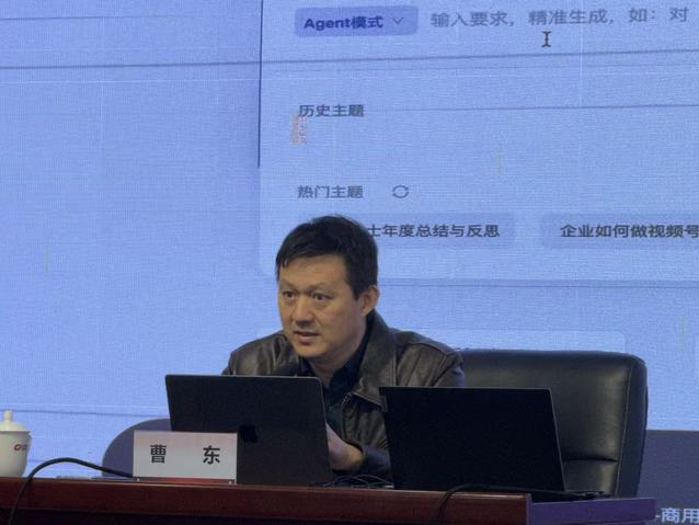 上海建桥学院博士后、高级工程师曹东以《AI赋能“精准育人”:上海民办高校辅导员的实践蓝图与伦理坚守》为题作报告。他介绍了人工智能的发展历程,讲解了AI如何助力辅导员“精准育人”,重点讲解演示辅导员如何运用AI提升工作效率,提高育人效果。