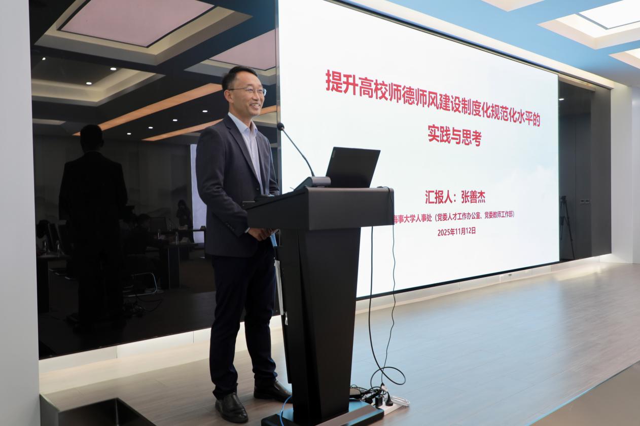 上海海事大学党委教师工作部副部长张善杰围绕“提升高校师德师风建设制度化规范化水平”作专题报告,结合实践案例提出一系列具有指导性与操作性的思考建议,令参训人员深受启发。