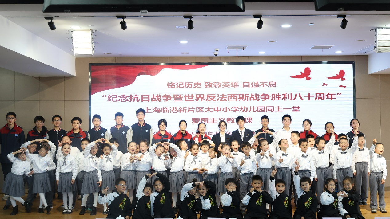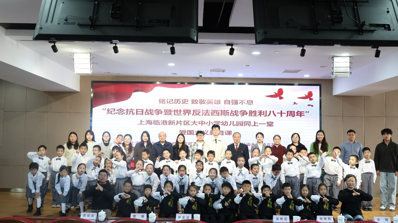 11月13日,上海建桥学院举办“纪念抗日战争暨世界反法西斯战争胜利八十周年”上海临港新片区大中小学幼儿园同上一堂爱国主义教育课。上海建桥学院、上海中学东校、上师大附属临港科创小学和冰厂田滴水湖幼儿园四所学校的师生代表参加了本次爱国主义教育课。本次活动也是我校党日主题活动展示会,二级学院基层党组织的党员代表观摩了本次党日主题活动。