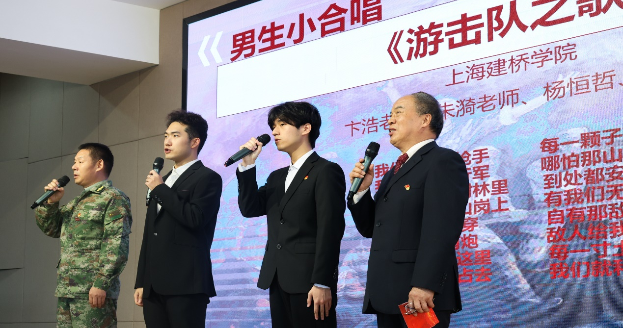上海建桥学院党委组织部副部长潘明芸讲话指出,举办抗日战争暨世界反法西斯战争80周年纪念活动,如同一本生动的爱国主义教材,具有特别重要的意义。我校持续开展思想政治大中小学一体化育人实践活动,取得显著的育人效果。她强调,作为新时代的教育工作者,我们要始终牢记“为党育人、为国育才”的使命,将爱国主义教育融入课堂教学、社会实践、校园文化的方方面面,让红色基因融入血脉;作为新时代的青年学子,要以英雄为榜样,把爱国情、强国志、报国行统一起来,在学习中增长本领,在实践中锤炼品格,让青春在全面建设社会主义现代化国家的火热实践中绽放绚丽之花。