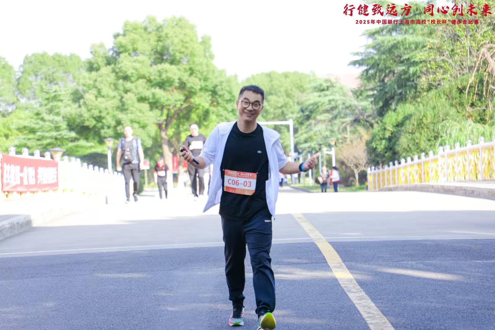 11月15日,2025年中国银行上海高校“校长杯”健步走活动在上海工程技术大学顺利举行。我校党委书记杨伟人率队,副校长陈伟、王邦永和校长助理张巍参加了此次活动。