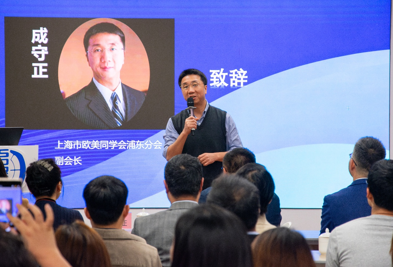 浦东分会副会长成守正先生亦上台致辞,对主办分会的通力协作与辛勤付出表示了高度肯定,对全体来宾的莅临与支持表达了诚挚的谢意,并勉励在场的留学人员发扬创新精神,在浦东这片充满机遇的热土上勇敢追逐创业梦想。