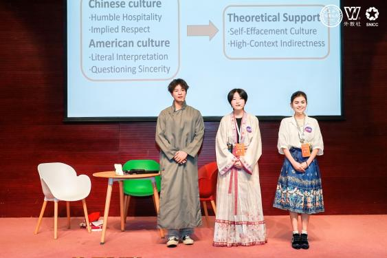 复赛现场设有跨文化案例展析、即兴问答和名言名句解读三大环节,全面考验选手的跨文化理论素养、逻辑思维与临场应变能力。建桥学院团队以清晰的逻辑、扎实的内容和自信从容的现场发挥,赢得了评委的高度认可。“我们聚焦真实多元文化场景,注重案例的创新性和应用价值,”团队成员表示,“三个月的集训不仅提升了专业能力,也深化了我们对跨文化交流的理解。”