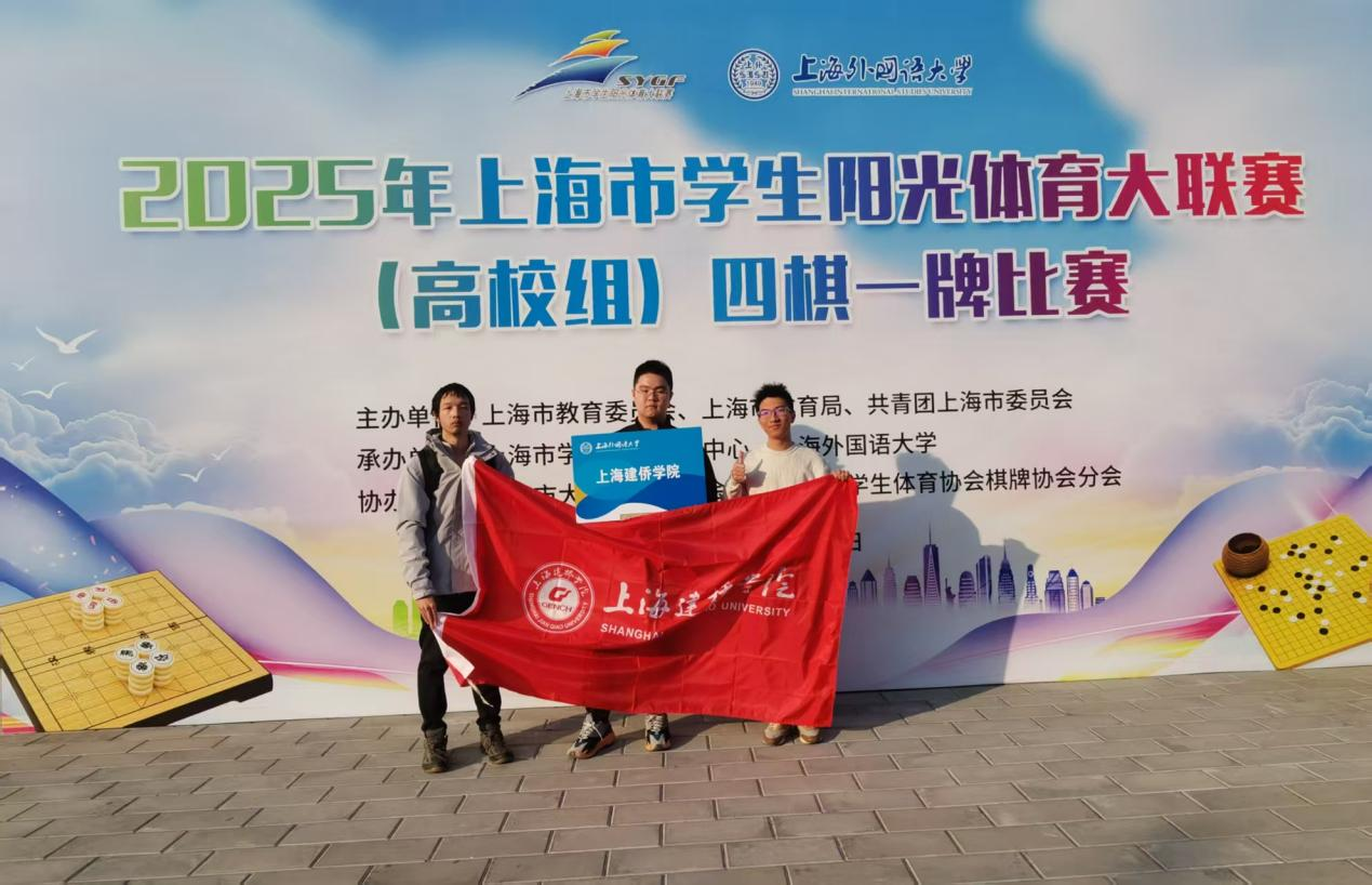 11月29-30日,2025年上海市学生阳光体育大联赛高校组棋牌比赛于上海外国语大学松江校区举行。建桥围棋校队由倪天翼、罗启宸、张浩宇三位同学组队参赛,发挥出色,最终与上海交通大学、上海大学共同荣获围棋男子组团体一等奖。
