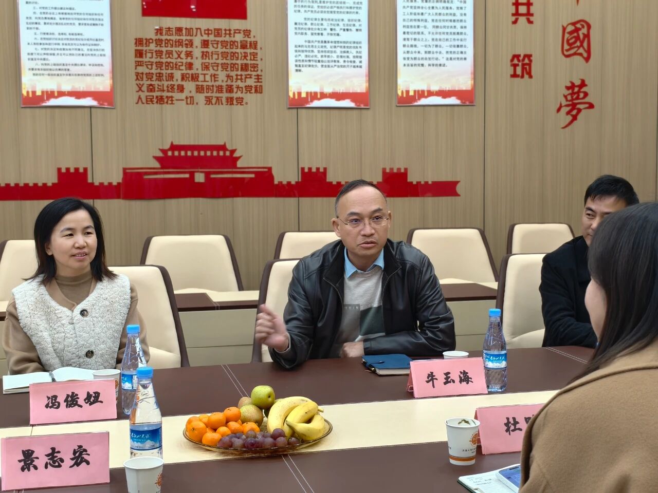 工商外国语附中党支部书记牛玉海对学院一行的到访表示欢迎,并介绍了学校的办学理念与特色课程。