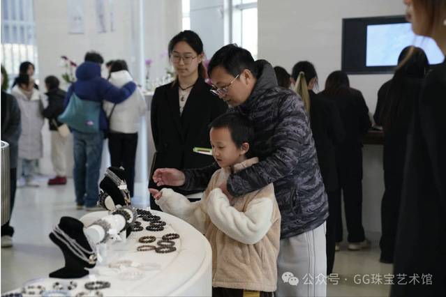 其中,“精品珠宝展售”环节成为焦点。这里大部分展售作品,从设计、研发到制作,均由珠宝学院师生团队独立完成。产品涵盖了培育钻石、红蓝宝石、珍珠、K金、玉石等多元品类。这些作品既承载了珠宝学院师生的专业研究成果,又兼具市场的商业吸引力,充分体现了“专业与创新创业”的发展路径。