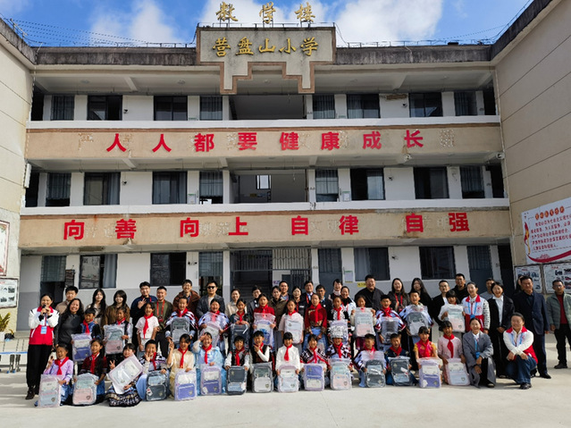 活动当天上午,学院师生随同受邀嘉宾前往倚象镇营盘山小学,实地查看捐赠课桌椅使用情况,走访学生宿舍、食堂等校园设施,亲身感受助学项目为边疆学校带来的积极变化。在面对面交流中,师生认真聆听当地教师和学生的成长分享,并与各界爱心人士共同绘制“爱心常青树”,将写满祝福的卡片挂满枝头,以真挚寄语见证志愿服务成果,助力边疆学子健康成长。