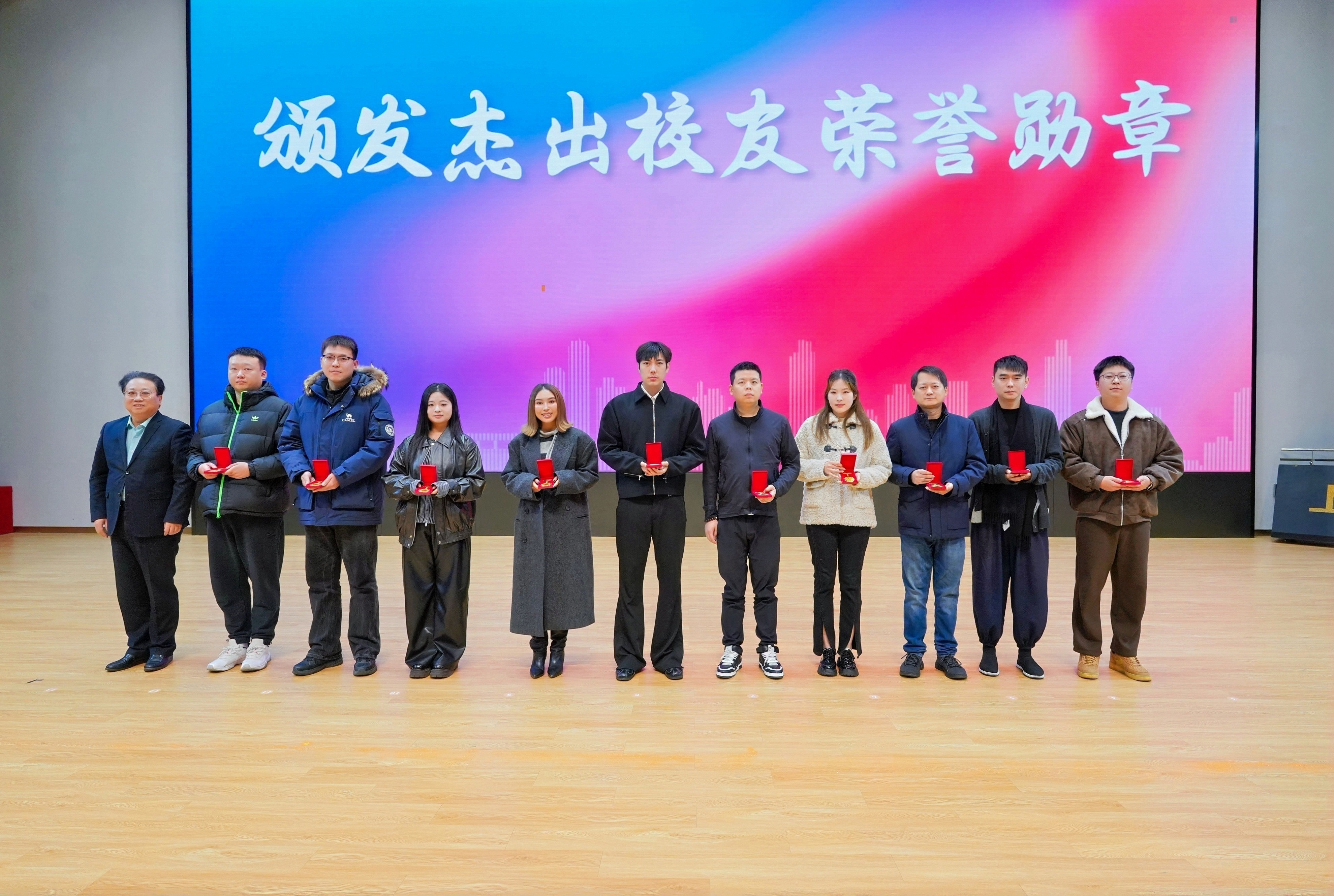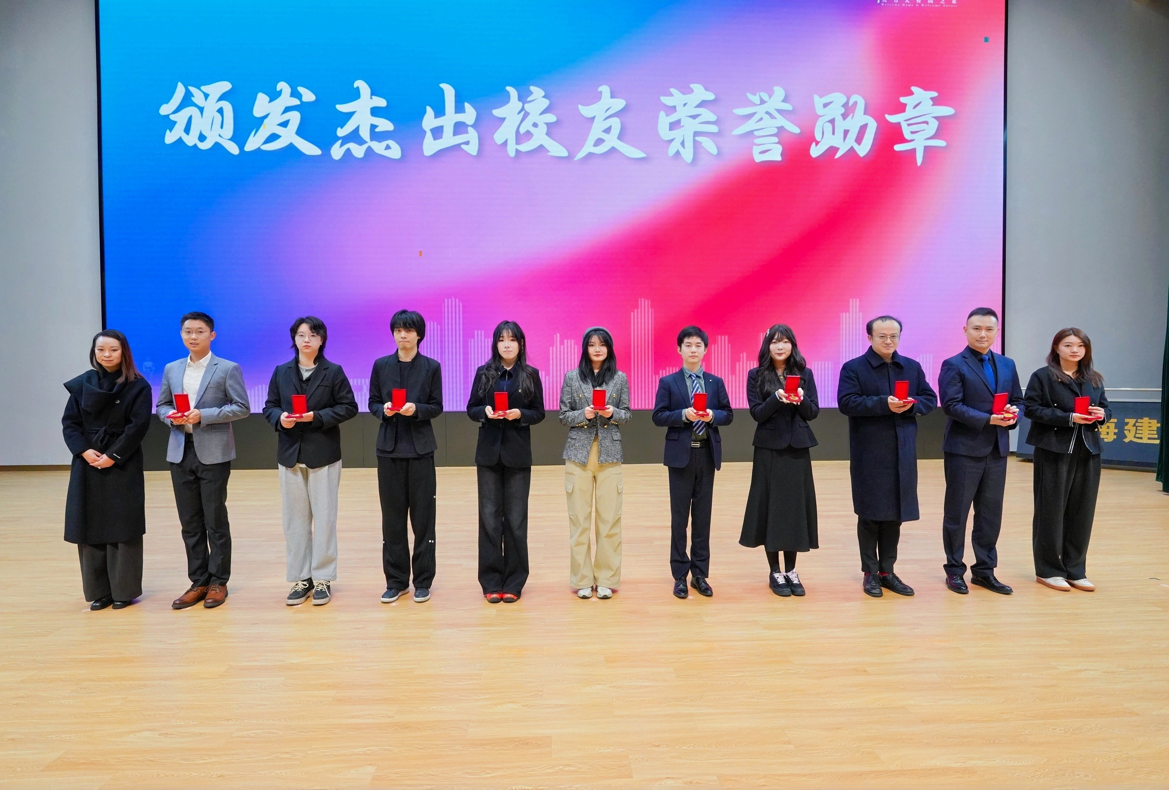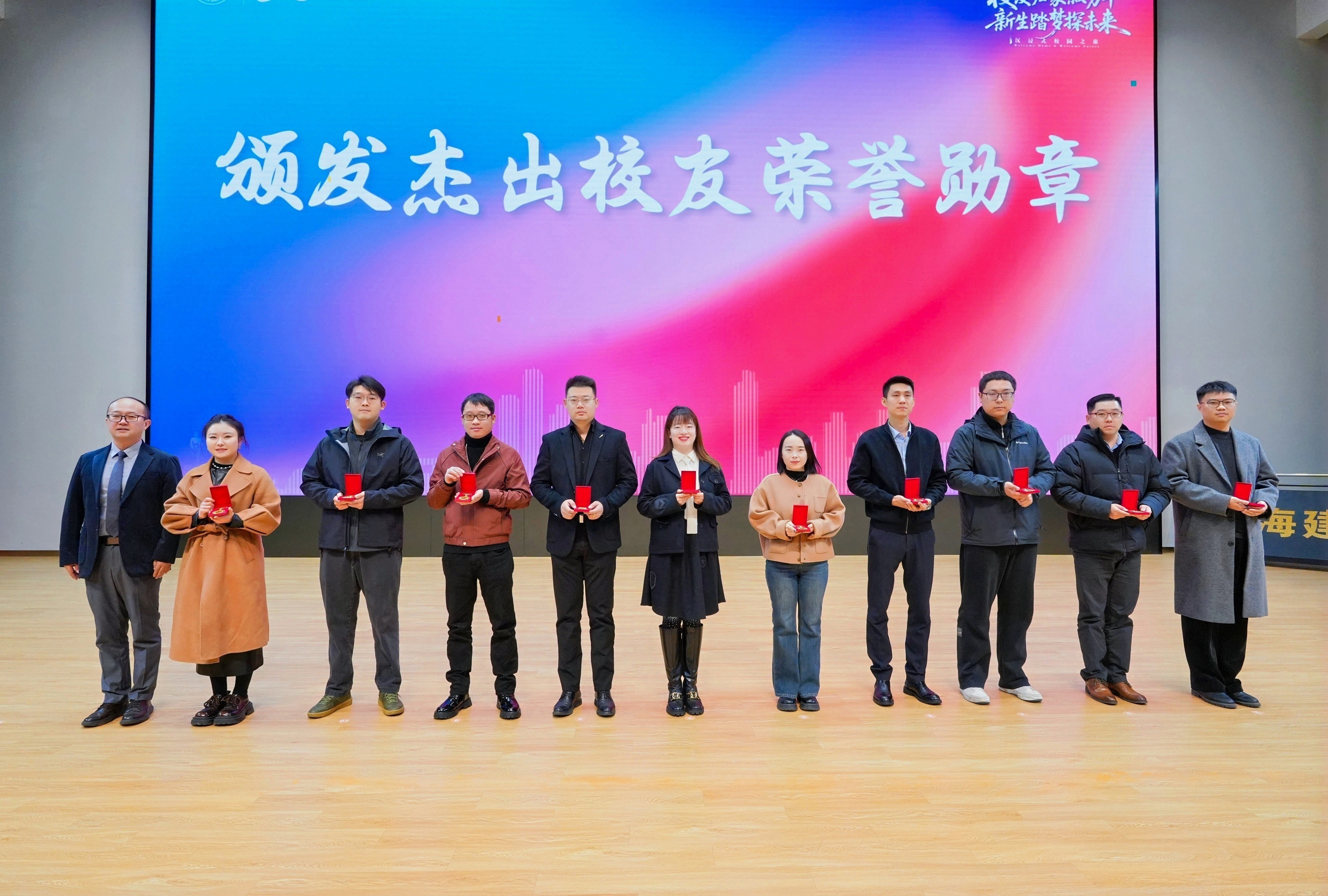 学校还为建校25年来涌现的100位杰出校友代表分批颁发了荣誉勋章,校领导及各二级学院院长分别上台,为校友代表授勋。这些校友在各自领域深耕细作,建功立业,用实际行动让“建桥人”的名字更加闪亮。