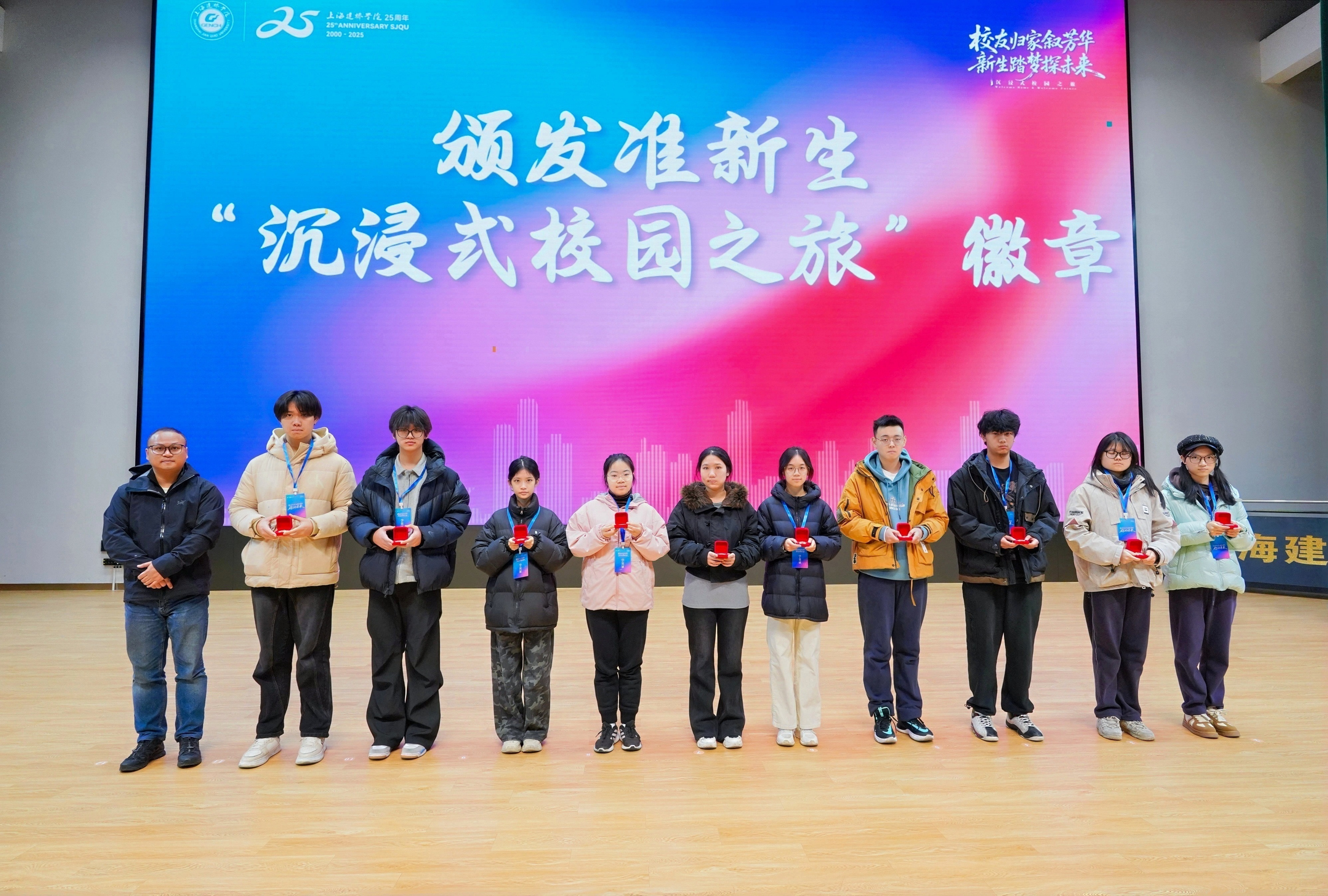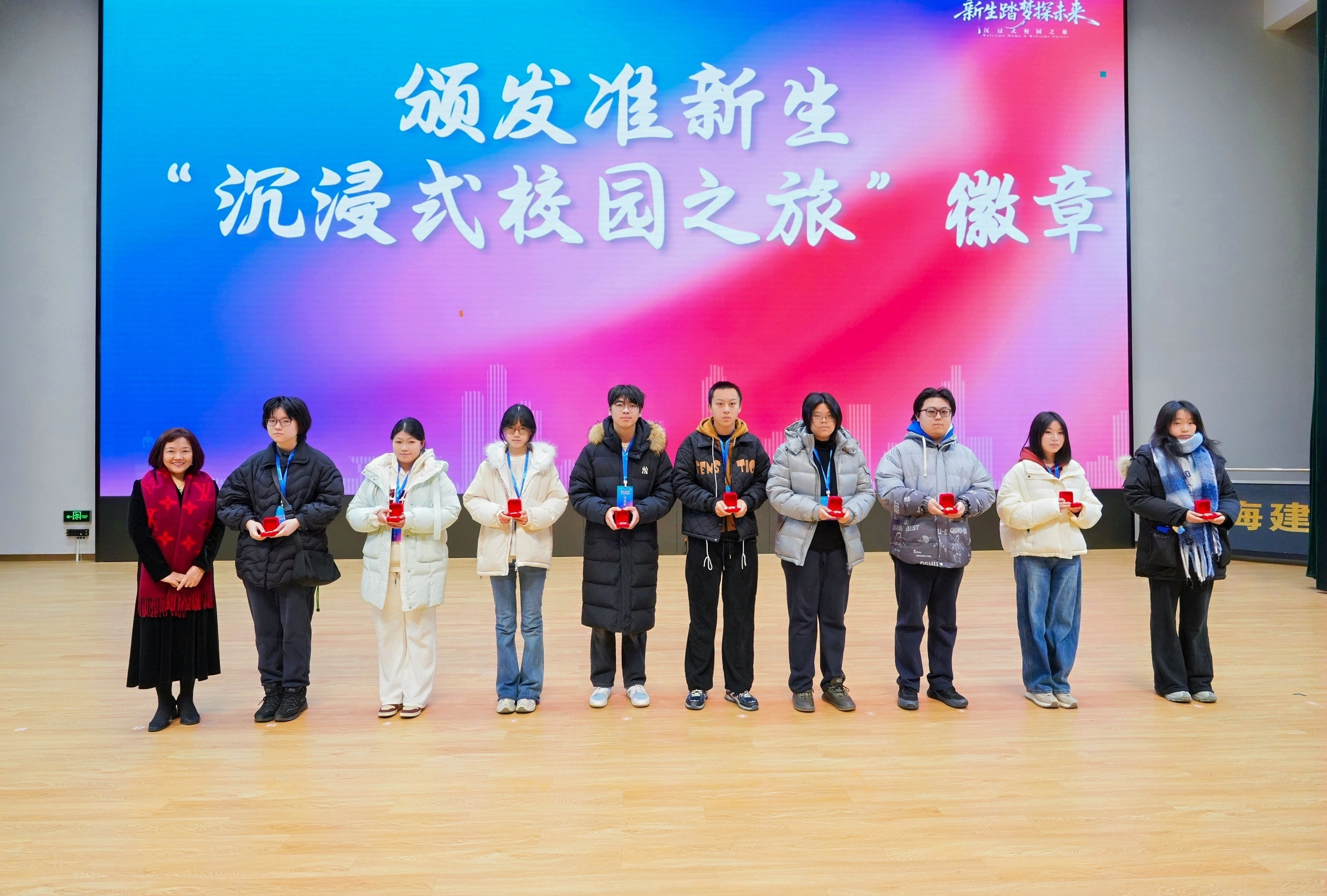 为让准新生提前感受建桥温度,学校特别颁发沉浸式校园之旅徽章。校领导及各二级学院党委书记分批为新生代表颁发徽章,寓意建桥精神的接力与传承。