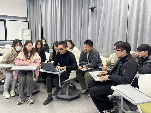 图为朱佳伟老师开展融媒创新工作坊指导学生短视频创作