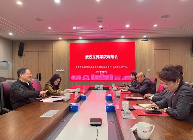 4月17日,武汉东湖学院党委书记姚海峰、教育部高校思想政治工作创新发展中心(武汉东湖学院)办公室副主任任鸿雁一行莅临我校调研。我校党委书记、思政创新发展中心主任杨伟人,副校长、思政创新发展中心常务副主任陈伟及相关职能处室负责同志陪同调研并参加座谈。
