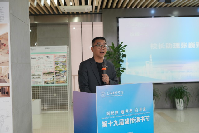 最美人间四月天,正是读书好时节。4月21日,以“阅经典 通世界 启未来”为主题的第十九届建桥读书节开幕式在图书馆举行。本届读书节由图书馆、外语与国际教育学院和校团委共同主办,旨在通过形式丰富的活动引导青年学子在阅读中厚植家国情怀、坚定文化自信,营造爱读书、善读书、读好书的浓郁书香校园氛围。校长助理张巍、上海工商界爱国建设特种基金会办公室主任宋艳雯、原上海市文物鉴定委员会委员、上海建桥学院教育发展基金会副理事长王毅、图书馆馆长阮鹏、校团委书记李月艳和各二级学院党委(党总支)书记、副书记、师生代表出席开幕式。